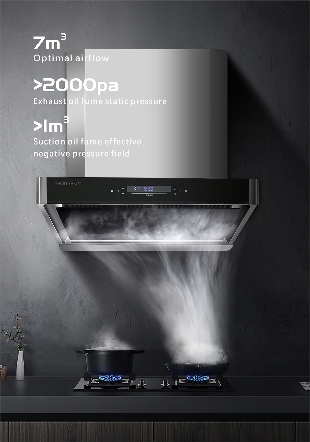 Static pressure at maximum air volume: 1028pa (static pressure of range hood and integrated stove is zero PA)